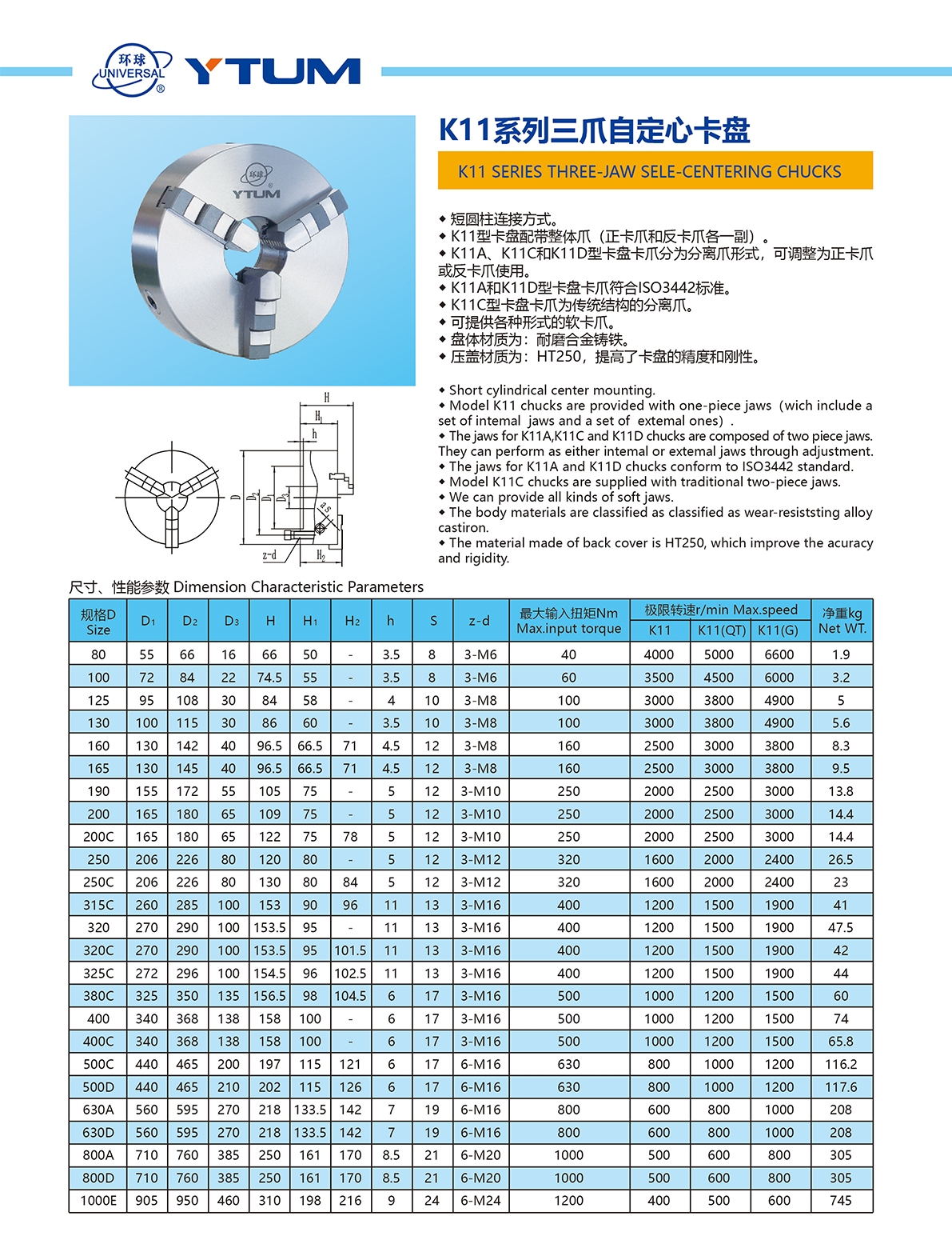 K11係列三爪卡盤
