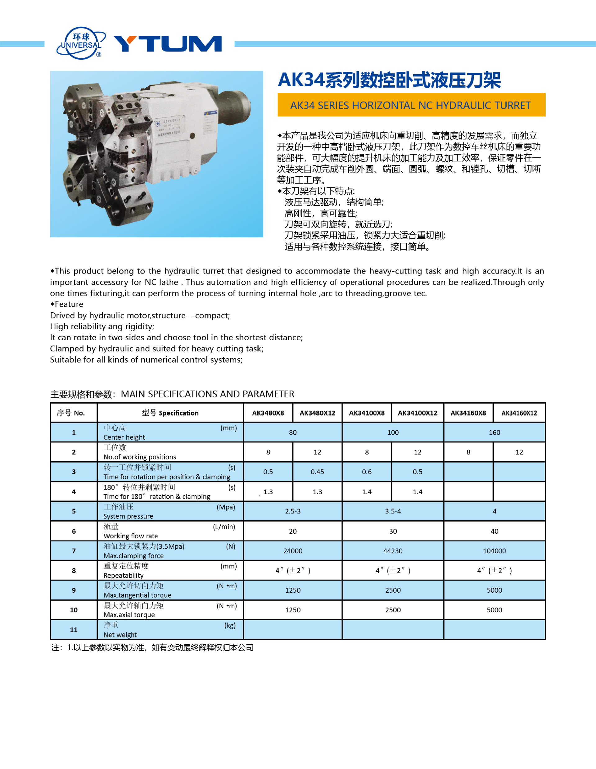 AK34係列數控臥式液壓刀架