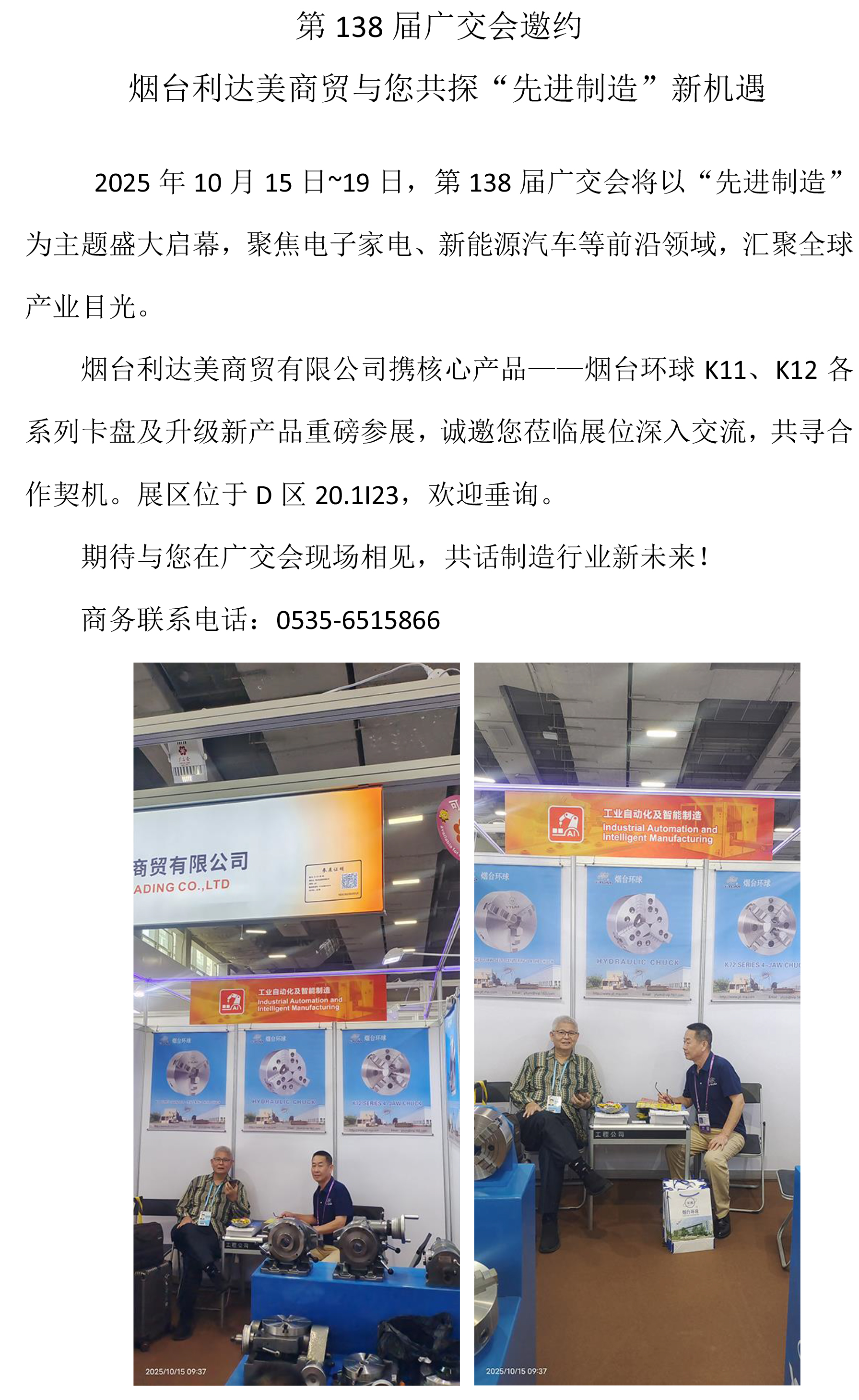 第(dì)138屆廣交會邀約 煙台利達美(měi)商貿與您共探“先進製造”新機遇